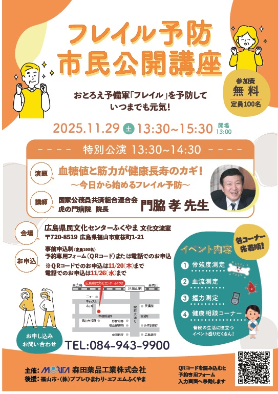 内 容:特別講演 「血糖値と筋力が健康長寿のカギ!」~今日から始めるフレイル予防~